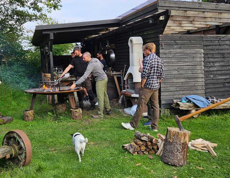 Jeg guider jer undervejs, tænder op, viser teknikker og hjælper hvor der er brug for det men det er jer, der laver maden og hygger jer omkring bålet.