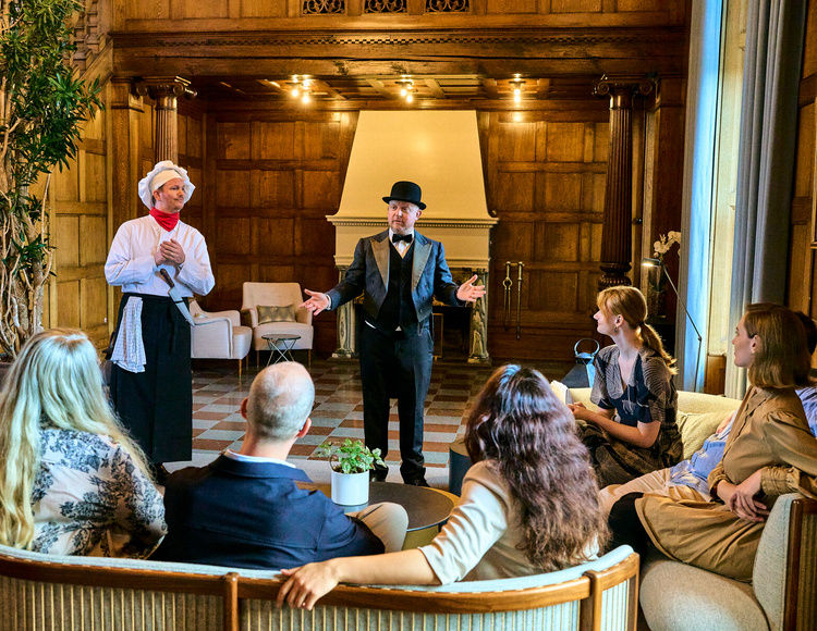Middag med mordmysterie er en levende og humoristisk oplevelse, hvor professionelle skuespillere driver historien frem og inddrager deltagerne undervejs. Oplevelsen kan tilpasses både formelle middage og mere uformelle firmaarrangementer og fungerer lige godt som underholdning og teambuilding. Historierne er gennemarbejdede, tempoet er afstemt middagen, og alle kan være med – uanset erfaring.