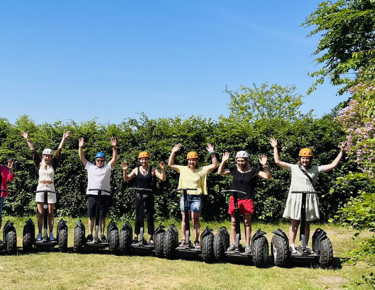 Vi har 12 segways og de kan køre overalt. Vi har vores egen bane i Rold skov med forskellige forhindringer men vil meget gerne køre i Aalborg, Blokhus eller hos jer. Vi kan hurtigt opsætte en bane hos jer, hvor der kan øves, dystes på præcision og stil. 8 segways passer til en gruppe på op til 25 personer.